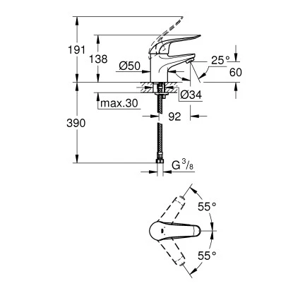 Die Grohe Einhand-Waschtischbatterie Euroeco Special ist gekennzeichnet durch ihre edle Formgebung und ihrem glatten Körper, der der Armatur das gewisse Etwas verleiht. Die Länge des Hebels misst 12 cm. Die einzigartige Grohe Technologie bietet eine Vielzahl von praktischen und komfortablen Funktionen.