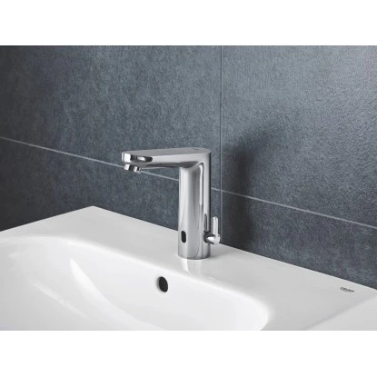 Die Grohe Sensor-Waschbeckenarmatur Eurosmart CE zeichnet sich durch einen praktischen Infrarot-Sensor, für bidirektionale Kommunikation, aus. Der Sensor sorgt für eine Wasserersparnis durch eine optimierte Durchflussdauer. Des Weiteren wird durch die berührungslose Bedienung ein Höchstmaß an Hygiene und Komfort gewährleistet.