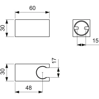 Brausehalter eckig, aus Metall, fix.