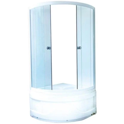 Die Duschkabine ist mit 2 Schwenk-Schiebetüren mit 4 mm Sicherheitsglas, sowie einer, mit 44 cm erhöhten, Brausetasse mit abnehmbarer Frontschürze ausgestattet.